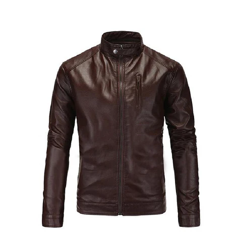 Step up your style game with this men’s dark brown leather jacket, crafted for both casual wear and biker vibes. Made from high-quality genuine leather, this jacket features a stand-up collar with a snap button, front zip closure, and a sleek, slim-fit design for a modern, edgy look. The single chest zipper pocket adds both style and practicality, making it perfect for storing essentials. Its soft inner lining ensures all-day comfort, while the durable stitching provides long-lasting wear. Ideal for everyday outfits, night outings, or motorcycle rides, this jacket is a must-have for your wardrobe.