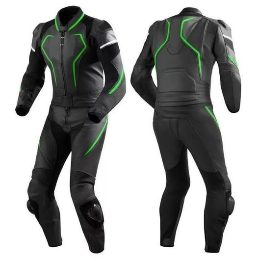 Professional Racing Biker Safety Suit – Black with Green Accents